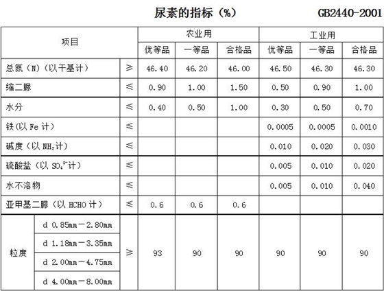 根(gen)據GB2440-2001,也就是尿素的(de)國标,裏面的指标(biao)可以更加清楚的(de)看出二者的區别(bie)。