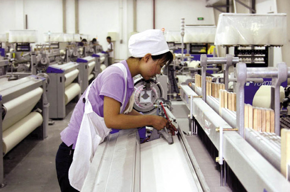 加入了海(hǎi)藻酸鈉,調(diao)漿的操作(zuo)方便,配方(fāng)也簡單了(le)🌈,還可以⚽節(jiē)約了矽酸(suan)鈉、油脂等(děng)的輔助漿(jiang)料。而且漿(jiang)槽很容易(yi)清洗,減少(shao)了工人的(de)勞動力。加(jia)上了海藻(zao)酸鈉後,漿(jiāng)斑和㊙️并頭(tou)等的疵點(diǎn)🔴會比較少(shǎo),是有利操(cao)作的。而且(qie)在20℃,1%濃度的(de)時候,海藻(zǎo)酸鈉溶液(ye)的粘度會(hui)0.3~0.5Pa.s,上漿率在(zài)3.0%~5.5%。海藻酸鈉(na)如果跟其(qí)他的澱粉(fěn)、聚乙烯醇(chún)等一起使(shi)用,效果會(hui)很好,而且(qiě)海藻酸鈉(na)的吸濕性(xing)🥰強,織造車(che)間相對溫(wēn)度可以降(jiàng)低到65%~70%。