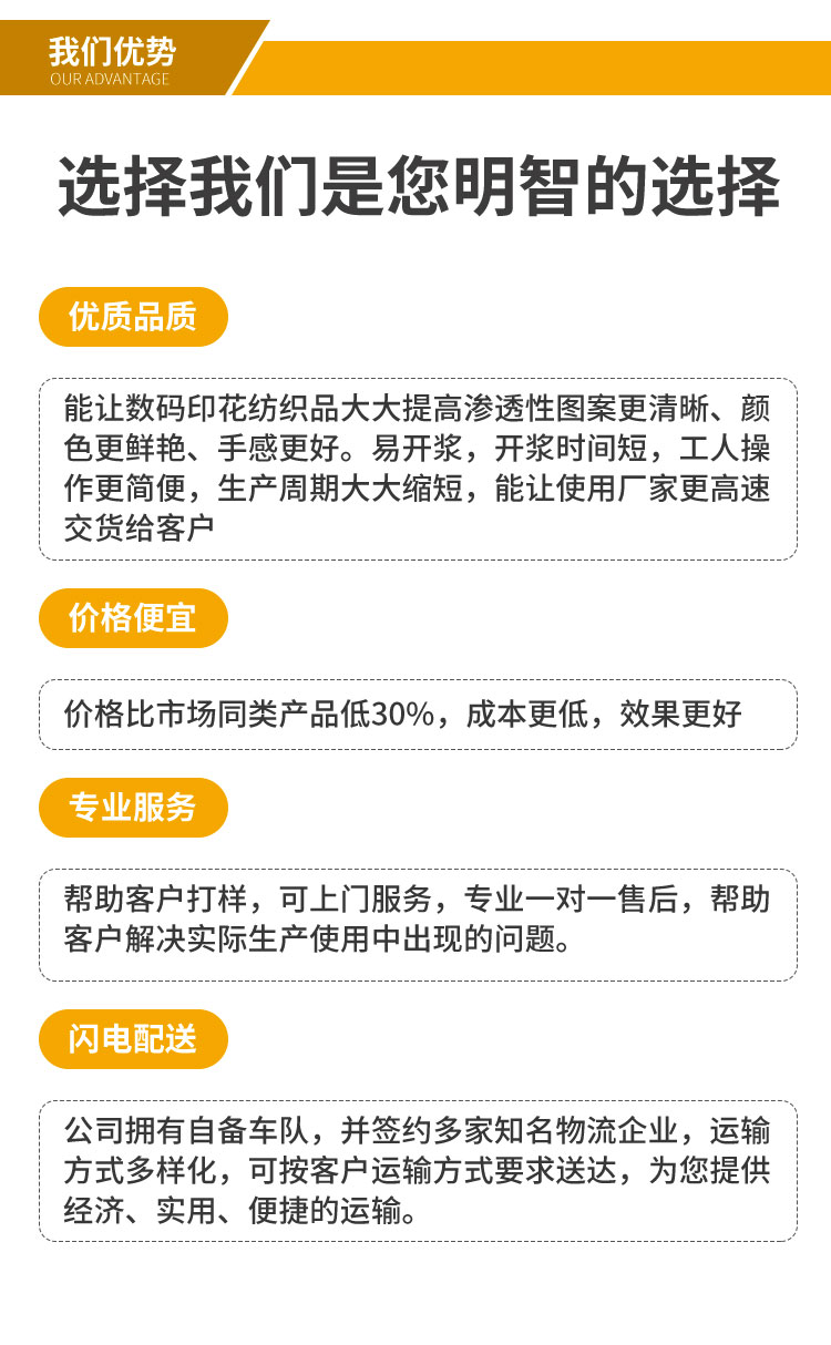 塗料數(shù)碼印花增色劑PPG03 說(shuo)明: 本資料是根據(ju)本公司現有的技(ji)術知識和經驗編(biān)寫的。由于在📞加工(gōng)和應用本公司産(chǎn)品的過程中有許(xǔ)多影響因素,因此(ci)不排除用戶自行(hang)試驗的必要性。